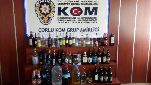 ÇORLU(Tekirdağ), (DHA)- TEKİRDAĞ’ın Çorlu ilçesinde polisin bir evde yaptığı aramada 40 litre kaçak içki ele geçirildi,1 kişi gözaltına alındı.