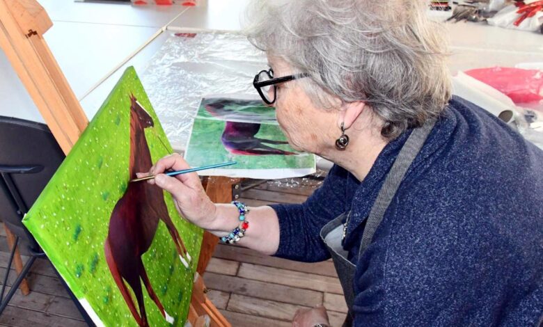 Almanya’da 3 sergi açtığını söyleyen Hanife Uysal, “Bu sene yine açmayı düşünüyorum. Herkesin de yapmasını istiyorum. İnsanı dinlendiriyor. Buraya dönüş yaptım, birkaç ameliyat geçirdim ve geçirdiğim büyük ameliyatlardı. Fakat ben bundan hiçbir zaman vazgeçmedim. Her zaman elimden fırçamı bırakmadım. Ben pek durak bilmeyen bir kişiyim. Devamlı böyle şeylerle meşgul olmayı seven bir kişiyim. 80 yaşındayım, ‘Beni ayakta tutan resimler’ diyorum. ‘Benim mücadelem’ diyorum. 3 çocuğum var, hepsini büyüttüm. Tek başıma okuttum, babaları 31 yıl önce vefat etti ve onları büyüttükten sonra kendime yaşamaya başladım. Resimlerimle beraber, 10 tane torunum var. Yaşıma göre kimisi yapma diyor, kimisi nasıl uğraşıyorsun diyor. Bilmiyorum yani ben seviyorum ve herkesin de sevmesini tavsiye ediyorum. Çünkü insana gerçekten terapi oluyor. Dikiş dikerken bile resimle kendimi deşarj ediyordum. Boş durmuyorum, beynimi hep çalıştırmaya zorluyorum. Herhalde bunlara da muvaffak oluyorum diyorum” diye konuştu.