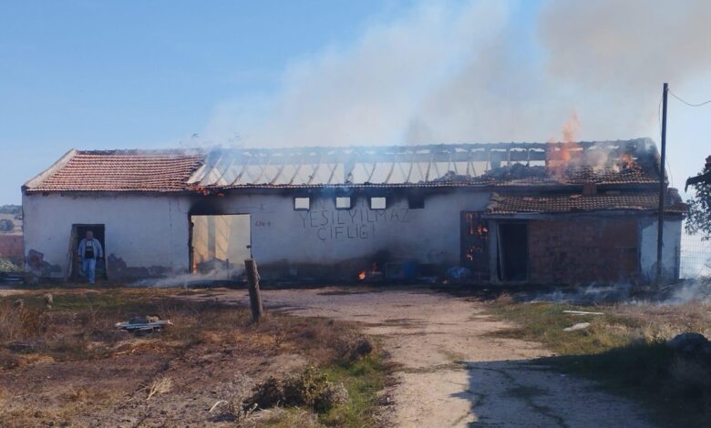Ünsal YÜCEL/EDİRNE, (DHA)- EDİRNE’nin Enez ilçesinde çıkan anız yangını yakındaki bir depoya sıçradı. Yaklaşık 15 ton buğday, 500 saman balyası ve depo yandı.