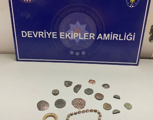 İlçe Emniyet Müdürlüğü ekipleri, Yenimescit Mahallesi Esenyurt Caddesi’nde durdurdukları M.K.’nin üzerindeki aramada, 14 parça sikke ve üzerinde çeşitli motifler basılı kağıtlar ele geçirdi. M.K.’nin parmak izi incelemesinde, soruşturması devam eden ‘Konut dokunulmazlığının ihlali’, ‘Evden hırsızlık’ ve ‘Mala zarar verme’ suçlarından arandığı belirlendi. M.K., polis ekipleri tarafından gözaltına alındı. (DHA)