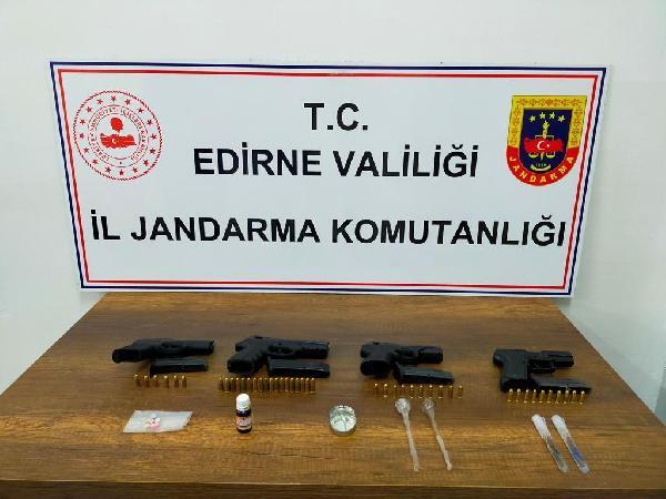 Edirne İl Jandarma Komutanlığı ekipleri, İpsala ilçesine bağlı Yenikarpuzlu beldesinde F.Ç.’ye ait av maksadıyla kullanılan binada uyuşturucu kullanıldığı ihbarı üzerine harekete geçti. Jandarma ekipleri, binada yaptıkları aramada 4 ruhsatsız tabanca, 44 mermi, 5 uyuşturucu hap, 10 gram metamfetamin ve 2 bong olarak tabir edilen uyuşturucu madde kullanma aparatı ele geçirdi. Olayla ilgili çeşitli suçlardan kayıtları bulunan F.Ç., M.Y., R.Y., E.A., M.A. ve O.K. gözaltına alındı. DHA)