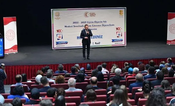 2022-2023 Eğitim-Öğretim Yılı merkezi sınavlarda başarı gösteren öğrencilerin ödüllendirildiği törene katılan Balıkesir Büyükşehir Belediye Başkanı Yücel Yılmaz, Avlu Kongre ve Kültür Merkezi’nde gençlerle bir araya geldi. Ali Hikmet Paşa Tesislerini çok büyük bir spor kompleksi haline getirerek gençlerin hizmetine sunduklarını ayrıca bu yıl spor kulüplerine 30 milyon lira ayni ve nakdi yardımda bulunduklarını belirten Başkan Yücel Yılmaz, şimdi de Balıkesir’de üniversite sınavına girecek tüm lise son sınıf öğrencilerinin ve ‘Ben bir daha denemek istiyorum’ diyen gençlerin, teşvik amacıyla sınav ücretlerini Büyükşehir Belediyesi olarak ödeyeceklerini söyledi.