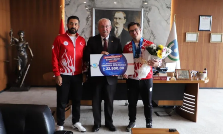 Tekirdağ Büyükşehir Belediye Başkanı Kadir Albayrak, aynı zamanda Tekirdağlı olan Avrupa Şampiyonu down sendromlu rekortmen atlet Emirhan Akçakoca’yı makamında ağırlayarak başarısından dolayı kendisini tebrik etti ve ödüllendirdi.