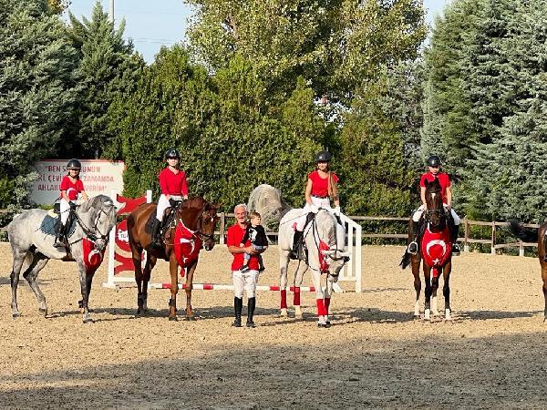 Türkiye Binicilik Federasyonuna bağlı Bursa Atlıspor Kulübü’nün yaşları 9 ile 16 arasında değişen sporcuları, atlarıyla birlikte maneje çıkarak Cumhuriyet Bayramı’nı kutladı. Engel atlamada dereceleri bulunan sporcular, atlarını Türk bayraklarıyla süsledi. Binicilerin, marşlar ve şarkılar eşliğindeki gösterisi, coşkuyla izlendi. (DHA)