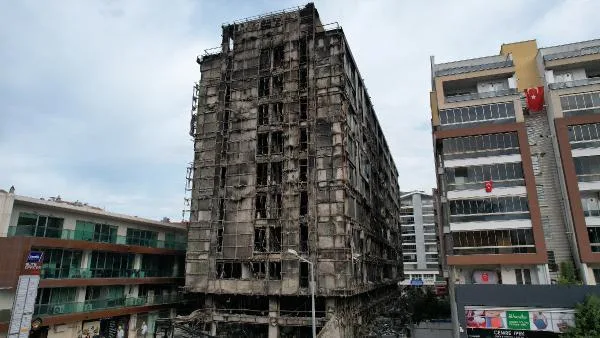 Yangının boyutu gün ağırınca ortaya çıkarken, hasar tespit çalışmalarına da başlandı. Giriş katında bulunan kafeden çıktığı değerlendirilen yangının nedeni de araştırılıyor. (DHA)