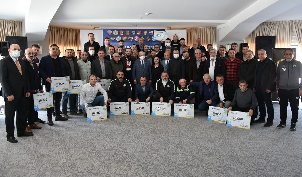 Konuşmaların ardından amatör spor kulüplerine sembolik yardım çekleri, Tekirdağ Büyükşehir Belediye Başkanı Kadir Albayrak’ın yanı sıra Tekirdağ Milletvekili İlhami Özcan Aygun, Büyükşehir Belediyesi Genel Sekreteri Fatih Ünsal, Gençlik Spor İl Müdürü Ahmet Üzgün, Tekirdağ Amatör Spor Kulüpleri Federasyonu Başkanı Mehmet Kaya ve CHP Süleymanpaşa İlçe Başkanı Aycan Gündüz tarafından takdim edildi.