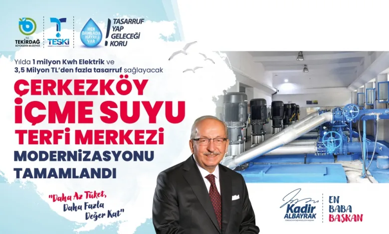 Tekirdağ Büyükşehir Belediyesi ve bağlı kuruluşu Tekirdağ Su ve Kanalizasyon İdaresi Genel Müdürlüğü (TESKİ) doğaya ve geleceğe duyduğu saygı ve sorumlulukla enerji giderlerini ve karbon ayak izini azaltmak amacıyla Tekirdağ genelindeki verimlilik projelerine hız kesmeden devam ediyor. Bu kapsamda Çerkezköy ilçesinde bulunan İçme Suyu Terfi Merkezi’nde modernize çalışmaları tamamlandı.