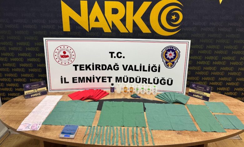 İl Emniyet Müdürlüğü Narkotik Suçlarla Mücadele Şube Müdürlüğü ekiplerinin ‘torbacı’lara yönelik çalışmasında Çerkezköy ilçesinin Yıldırım Mahallesi’nde yaşayan bir kişinin uyuşturucu satışı yaptığı belirlendi. Belirlenen adrese düzenlenen operasyonda peçetelere emdirilmiş halde 27 bin kullanımlık sentetik narkotik madde, hassas terazi ve suçtan elde edildiği değerlendirilen 42 bin 200 TL ele geçirildi. Gözaltına alınan şüpheli sevk edildiği adliyede çıkarıldığı mahkemede ‘Uyuşturucu madde ticareti yapmak’ suçundan tutuklandı. (Haber Merkezi)