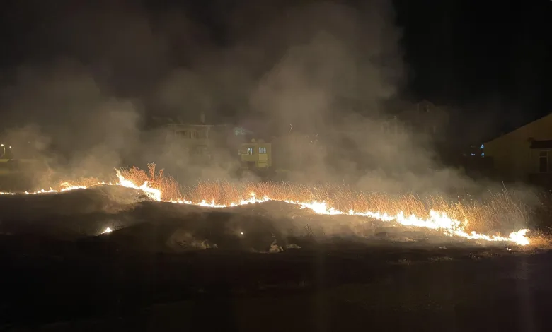 Yangın, saat 22.30 sıralarında, Cumhuriyet Mahallesi Nazmi Başar Caddesi’nde çıktı. İddiaya göre, çocukların otluk alana attıkları torpilin patlaması ile çıkan kıvılcımlar yangına neden oldu. Alevler, rüzgarın da etkisiyle kısa sürede büyüdü. İhbar üzerine bölgeye polis ve itfaiye ekipleri sevk edildi. Polis, çevrede güvenlik önlemi alırken, yangın itfaiyenin müdahalesiyle çevredeki ev ve bahçelere sıçramadan kontrol altına alınarak, söndürüldü. Polis, olayla ilgili inceleme başlattı. (DHA)