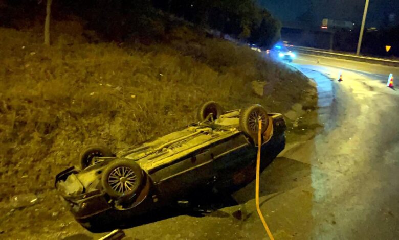 Yol kenarında ters dönerek duran otomobilde sürücü Emirhan B., hafif yaralandı. Emirhan B., kazayı görenlerin yardımıyla otomobilden çıkarılırken, ihbarla bölgeye sağlık ve polis ekipleri sevk edildi.