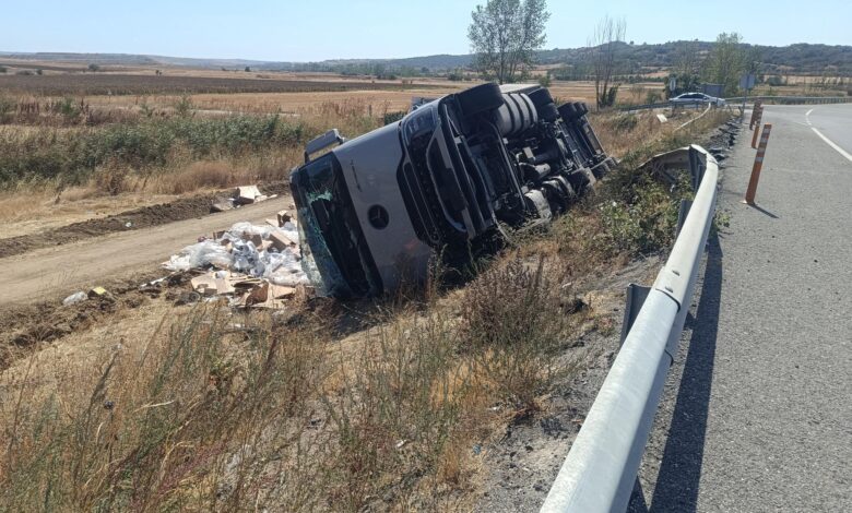 Ünsal YÜCEL/EDİRNE,(DHA)-EDİRNE’nin Uzunköprü ilçesinde devrilen TIR’ın sürücüsü C.Ö. yaralandı.