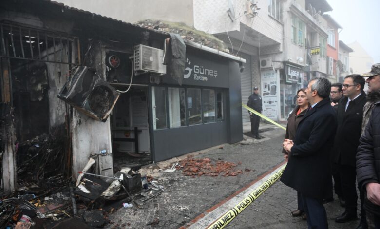 Yangının verdiği hasar ise günün ilk ışıklarıyla ortaya çıktı. Edirne Valisi Yunus Sezer, 3 dükkan, 2 depo olmak üzere toplam 5 iş yerinin hasar gördüğü bölgede incelemede bulundu. İş yerleri yanan esnafla sohbet eden Sezer, can kaybı olmamasının sevindirici olduğunu belirtti. Sezer, “Dün akşam saatlerinde, 10.00 gibi maalesef bir yangın çıktı. Önce bir dükkanda başladı sonra yandaki iki dükkan ve arkadaki depoları etkiledi. Toplam 5 işyerini etkileyen bir yangın oldu. İtfaiyemizin müdahalesiyle hemen kontrol altına alındı. Bugün de hasar ve zarar durumunu görmek için geldik. Sevindirici kısmı; can kaybımız yok ve yangın da çok fazla büyümeden söndürüldü. Çünkü burası biliyorsunuz şehrin kalbi konumunda, kapalı çarşı ve diğer çarşılarımızın olduğu bir yer. Büyümeden söndürülmesi bizim açımızdan sevindirici. Geçmiş olsun diyoruz, inşallah bundan sonra da esnafımız yaralarını sarıp, işine bakar diye düşünüyoruz” şeklinde konuştu.(DHA)