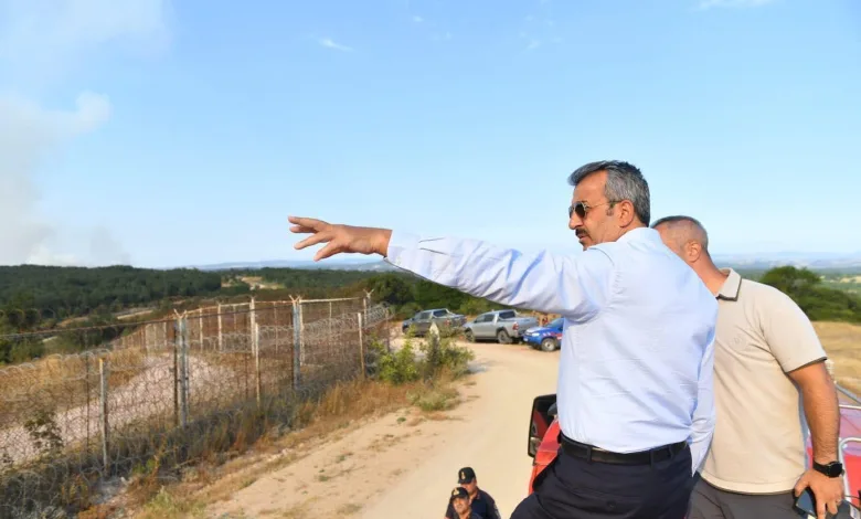 Ünsal YÜCEL/EDİRNE,(DHA)-EDİRNE Valisi Yunus Sezer, Bulgaristan’da Türkiye’ye yakın bölgede devam eden orman yangınıyla ilgili sınır hattında incelemelerde bulunarak, yetkililerden bilgi aldı.