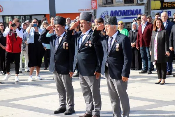 Büyük önder Mustafa Kemal Atatürk’e, Türkiye Büyük Millet Meclisi’nce (TBMM) ‘Gazi’ unvanı ile ‘Mareşal’ rütbesinin verilişinin yıldönümü olan 19 Eylül Gaziler Günü, Edirne’de törenle kutlandı. Kent merkezindeki Atatürk Anıtı’nda düzenlenen törene Edirne Valisi Yunus Sezer, Garnizon Komutanı Tuğgeneral Berat Acar, AK Parti Edirne Milletvekili Fatma Aksal, CHP Edirne Milletvekili Baran Yazgan, gaziler, gazi ve şehit yakınlarıyla, askeri ve mülki idare temsilcileri katıldı. Anıta çelenk sunulan törende, saygı duruşunda bulunulup, istiklal marşı okundu.