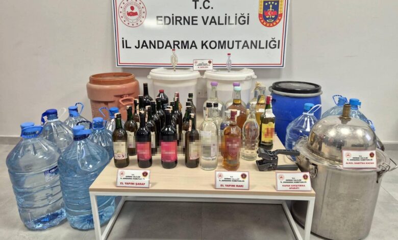 İl Jandarma Komutanlığı Asayiş Şube Müdürlüğü Jandarma Suç Araştırma Timi (JASAT) ile Keşan Jandarma Komutanlığı ekipleri, M.K.’nın Keşan’a bağlı Gökçetepe köyündeki evinde arama yaptı. Aramada, 384 litre sahte içki, sahte içki yapımında kullanılan damıtma kazanı ve kapak sıkma aparatı ele geçirildi. Şüpheli M.K. gözaltına alındı. (DHA)