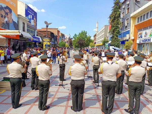 Olgay GÜLER / EDİRNE, (DHA)- EDİRNE’de 30 Ağustos Zafer Bayramı dolayısıyla, Çorlu 5’inci Kolordu Bölge Bando Komutanlığı tarafından, kentin en kalabalık caddesinde konser verildi.