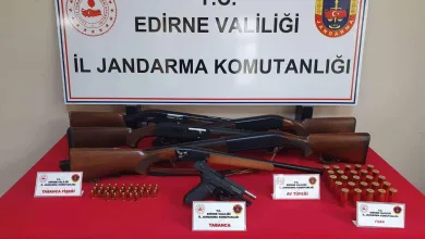 İlçe Emniyet Müdürlüğü ekipleri, Büyük Cami Mahallesi İsmet İnönü Caddesi üzerinde yaptığı denetimde Keşan İlamat ve İnfaz Bürosu’nca ‘Sayı nitelik bakımından vahim olan silah veya mermileri satın alınması taşınması bulundurulması’ suçundan 4 yıl 2 ay hapis cezasıyla aranan H.A.’yı yakalayarak, gözaltına aldı. Emniyetteki işlemlerinin ardından adli makamlara sevk edilen H.A., tutuklandı. (DHA)