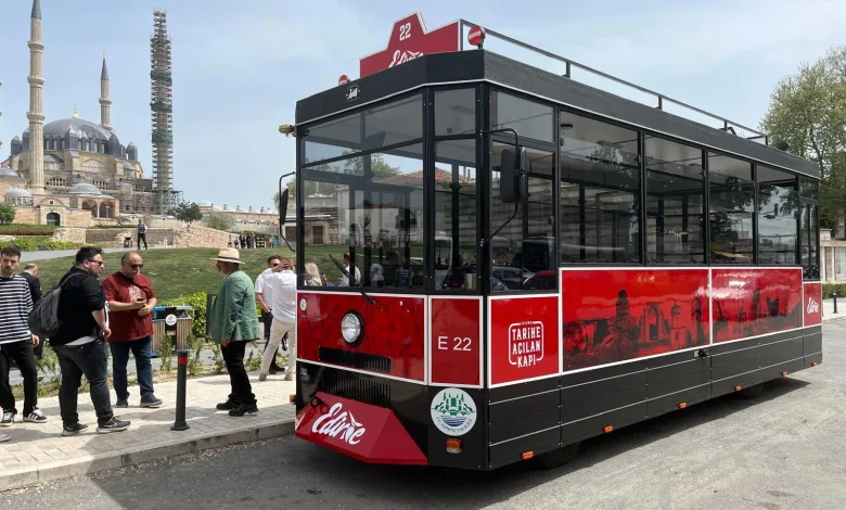 Olgay GÜLER- Umut IŞIK/EDİRNE, (DHA)- EDİRNE’de Turizm Haftası kapsamında Turizm Enformasyon Ofisi’nin açılışı gerçekleştirirken, ardından yerli ve yabancı turistlere hizmet verecek nostaljik tramvay görünümlü ‘Turistik Gezi Treni’ de ilk seferini yaptı. Edirne Valisi Yunus Sezer, “Bu nostaljik tren bir farkındalık oluşturma adına yapılmış ve tarihi lokasyonlara hızlı erişim, sağlıklı bilgi edinme adına yapılmış bir deneme. İnşallah Edirne Balkanlar’ın ve Türkiye’nin çok önemli lokasyonlarından biri olur” dedi.