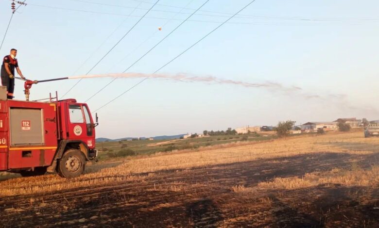 Ünsal YÜCEL/KEŞAN(Edirne),(DHA)-EDİRNE’nin Keşan ilçesinde elektrik trafosundan sıçrayan kıvılcımlar nedeniyle çıkan ot yangını, itfaiyenin müdahalesiyle büyümeden söndürüldü.