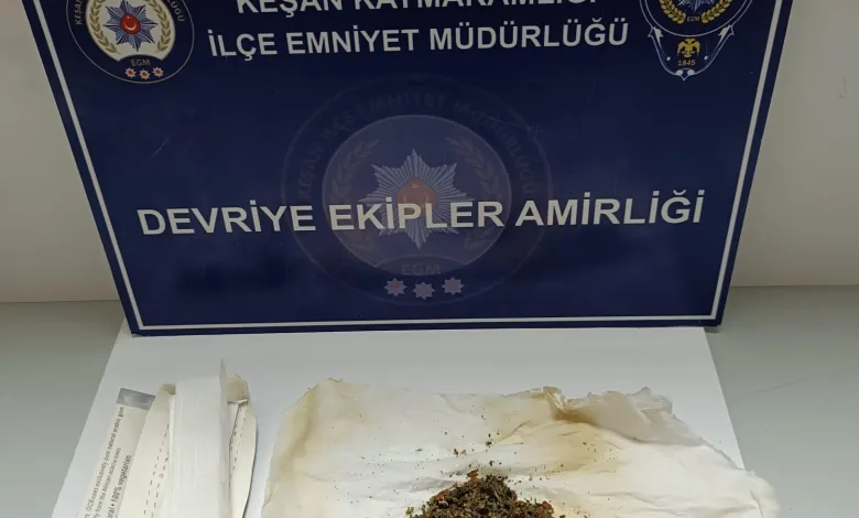 İlçe Emniyet Müdürlüğü ekipleri, Yukarı Zaferiye Mahallesi Enez Caddesi üzerinde park halindeki otomobilden şüphelenerek arama yaptı. Aramada, şoför koltuğunun alt kısmına gizlenmiş 5.58 gram esrar ele geçirildi. Araçta bulunan Ö.B., A.K. ve A.C.G., polis tarafından gözaltına alındı. (DHA)