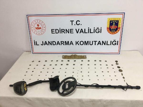 Uğur AKAGÜNDÜZ/EDİRNE, (DHA)-EDİRNE’de jandarma ekiplerinin düzenlediği operasyonda tarihi sikkeller ele geçirildi, 1 kişi gözaltına alındı.