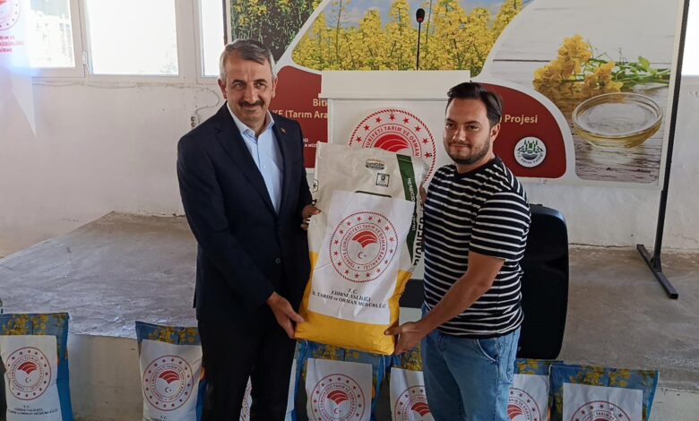 Batuhan SEVER / EDİRNE, (DHA)- EDİRNE’de, özellikle kuraklıktan etkilenen bölgelerde verimin düştüğü ayçiçeğine alternatif olarak görülen önemli yağlık bitkilerden kanolayla ilgili geliştirilen proje kapsamında, Tarım ve Orman İl Müdürlüğü tarafından, 600 üreticiye yüzde 50 hibeyle 12 ton 800 kilo tohum dağıtıldı.
