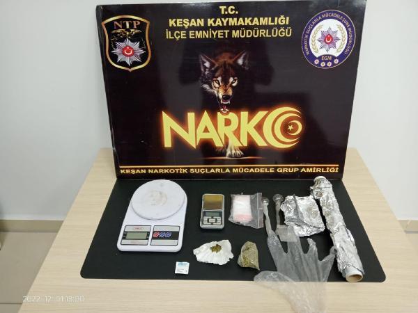 Ünsal YÜCEL/KEŞAN(Edirne), (DHA)-EDİRNE’nin Keşan ilçesinde polis tarafından bir evde yapılan aramada bir miktar uyuşturucu ele geçilirken, olayla ilgili gözaltına alınan Ş.D., tutuklandı.