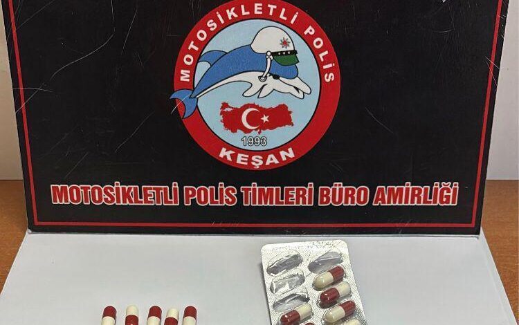 Ünsal YÜCEL/EDİRNE,(DHA)-EDİRNE’nin Keşan ilçesinde polis tarafından üzerinde bir miktar uyuşturucu ele geçirilen şüpheli, gözaltına alındı.