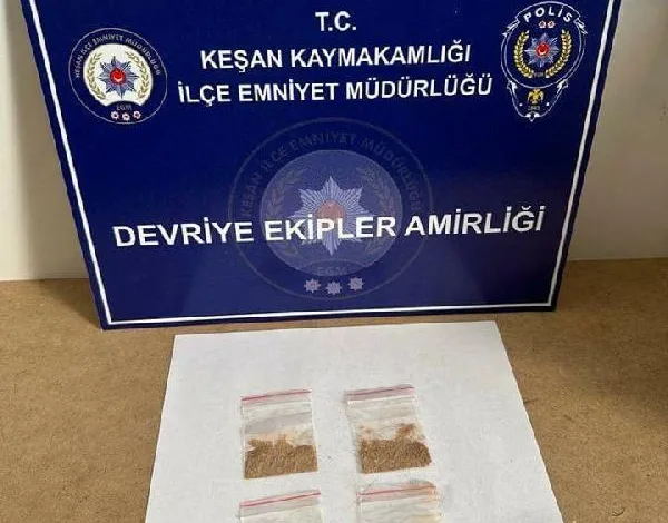 Ünsal YÜCEL/EDİRNE,(DHA)-EDİRNE’nin Keşan ilçesinde üzerlerinde uyuşturucu madde ele geçirilen 2 kişi, polis tarafından gözaltına alındı.