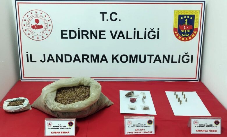 İl Jandarma Komutanlığı İstihbarat Şubesi, Uzunköprü İlçe Jandarma Komutanlığı ve Uzunköprü Jandarma Suç Araştırma Timi (JASAT) ekipleri tarafından, ilçenin Aşçıoğlu Mahallesi’nde H.G.’nin evine operasyon düzenlendi. Evde yapılan aramada, 1 kilo 700 gram esrar, 20 gram bonzai ve 7 tabanca mermisi ele geçirildi. Gözaltına alınan H.G. ile ilgili soruşturma sürüyor.(DHA)