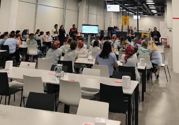 İlçe Emniyet Müdürlüğü Toplum Destekli Polislik ile Aile İçi ve Kadına Karşı Şiddetle Mücadele Büro Amirliği ekipleri, Keşan’da faaliyet gösteren bir tekstil fabrikasında çalışan yaklaşık 600 kadın işçiye, ‘iletişim ve bilişim sistemleri yoluyla dolandırıcılık’ suçları ile KADES uygulaması hakkında bilgilendirmede bulundu. Ekipler ayrıca kadınlara ‘Kadına el kalkmaz’ temalı broşürler dağıttı.(DHA)