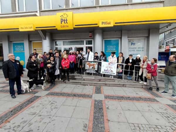 EDSHAYKO üyesi hayvanseverler, Edirne’de trafiğe kapalı Saraçlar Caddesi’nde bir araya gelerek, sokak hayvanlarına bakım evlerinde uygulanan kötü muamele ve şiddetle ilgili basın açıklaması yaptı. En son Konya Büyükşehir Belediyesi barınağında gündeme gelen olayın da hatırlatıldığı etkinlikte açıklamayı dernek adına Dilek Çiftçi okudu. Açıklamada, sokak hayvanları sayısını kontrol altına almanın tek yolunun düzenli kısırlaştırmadan geçtiği belirtildi.