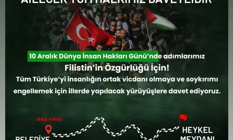 Yürüyüşte, İsrail’in Filistin’de işlediği insanlık suçları ve soykırım girişimlerine dikkat çekilecek. Ayrıca, tüm dünyadaki mazlumlara destek mesajları verilecek.