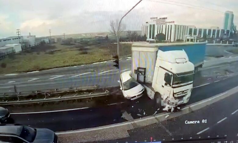 / ERGENE(Tekirdağ), (Haber Merkezi)- TEKİRDAĞ’ın Ergene ilçesinde, kırmızı ışık ihlali yapan TIR’ın çarparak metrelerce sürüklediği otomobilin sürücüsü yaralandı. Kaza anı güvenlik kamerasına yansıdı.