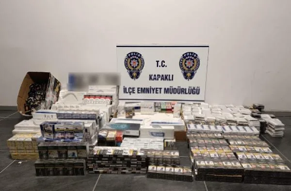 Kapaklı İlçe Emniyet Müdürlüğü Asayiş Büro Amirliği ekipleri, uygulama noktasında şüphe üzerine durdurup aradıkları bir araçta 971 paket kaçak sigara ele geçirdi. Bunun üzerine sürücü S.Y.’nin ev ve iş yerinde yapılan aramalarda da 10 bin dolum sigara, 27 elektronik sigara, 60 paket dolum ve gümrük kaçağı sigara ele geçirdi. Gözaltına alınan S.Y. ile ilgili soruşturma sürüyor. (DHA)