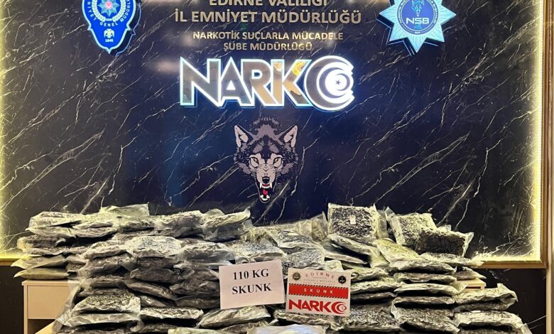 Edirne Emniyet Müdürlüğü Kaçakçılık ve Organize Suçlarla Mücadele (KOM) Şube Müdürlüğü, Narkotik Suçlarla Mücadele Şube Müdürlüğü ve İstihbarat Şube Müdürlüğü ekiplerinin koordineli çalışması sonucu, Kapıkule Sınır Kapısı’ndan yurda giriş yapan Z.A. yönetimindeki TIR takibe alındı. İşlemlerinin ardından Kapıkule’den Edirne istikametine seyir halinde olan TIR, yol üzerinde önlem alan polis tarafından durduruldu. TIR’da yapılan aramada piyasa değeri 20 milyon lira olan 110 kilo skunk maddesi ele geçirildi. Olayda gözaltına alınan Z.A., çıkarıldığı hakimlikçe tutuklandı.