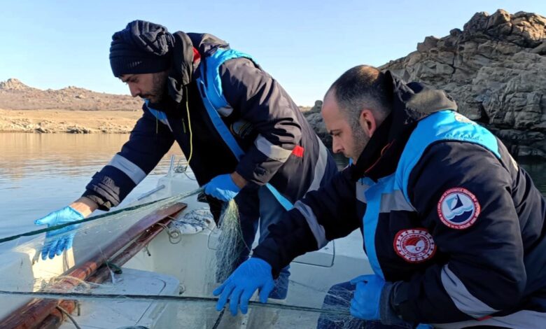 İl Tarım ve Orman Müdürlüğü ekipleri Kayalı Barajı’nda denetimde bulundu. Denetimde yasa dışı avcılıkta kullanılan çeşitli uzunluklardaki uzatma ağlarına el konuldu. Ağa takılan canlılar ise zarar görmeden doğal ortamlarına geri bırakıldı.Müdürlükten yapılan açıklamada, “İlimizde su ürünleri denetimleri kapsamında, Kayalı Barajı’nda yasa dışı su ürünleri avcılığında kullanılan muhtelif uzunlukta uzatma ağına el konularak ağa yakalanmış olan canlılar serbest bırakılmıştır. İlimizdeki canlı çeşitliliğini korumak ve gerek iç sularımızı gerek dış sularımızdaki ekosistem içerisindeki tür çeşitliliğinin sürdürülebilirliğini sağlamak amacıyla denetimlerimize aralıksız olarak devam etmekteyiz” denildi. (DHA)
