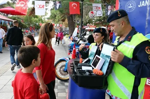 Kırklareli İl Jandarma Komutanlığı Aile İçi Şiddetle Mücadele ve Çocuk Suçları Kısım Amirliği, kentteki 29 Ekim Cumhuriyet Bayramı kutlamaları kapsamında stant kurdu. Etkinlikte kapsamında, geçmişten günümüze jandarmanın tanıtımı yapılarak, KADES programı hakkında vatandaşlar bilgilendirildi ve 780 kadının cep telefonlarına KADES uygulamasının yüklendi. Etkinlikte ayrıca trafik ekipleri tarafından trafik kazalarına karşı uyulması gereken önlemler anlatıldı. (DHA)