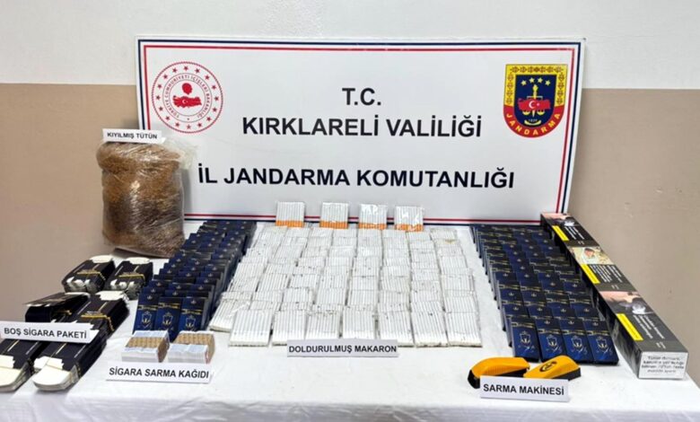 İl Jandarma Komutanlığı ekipleri, kaçakçılık ve organize suçlarla mücadele kapsamında, Demirköy ve Kofçaz ilçelerinde belirlediği adreslere operasyon düzenledi. Adreslerde yapılan aramalarda, 3 bin 620 dolu makaron, 600 boş makaron, 300 boş sigara paketi, 120 sigara sarma kağıdı, 3 kilo açık tütün, 2 tütün sarma makinesi ele geçirildi. Gözaltına alınan 2 şüpheli hakkında adli işlem yapıldı. (DHA)