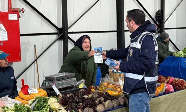 Emniyet Müdürlüğü Asayiş Şube Müdürlüğü ekipleri, dolandırıcılık suçlarına karşı vatandaşları ve esnafı bilgilendirmek amacıyla kapalı pazar yerinde etkinlik düzenledi. Polis, pazarda alış veriş yapan vatandaşlara ve esnafa yönelik bilgilendirme broşürleri dağıtarak, dolandırıcılık yöntemleri hakkında farkındalık oluşturdu. Ayrıca, dolandırıcılıkla mücadeleye yönelik alınması gereken önlemler de anlatıldı. Emniyetten yapılan açıklamada, eğitim ve bilgilendirme faaliyetlerinin önümüzdeki günlerde de devam edeceği belirtildi. (DHA)
