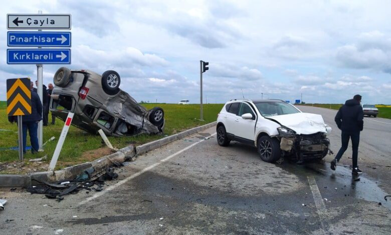 Kaza, Çevreyolu üzerinde meydana geldi. Alınan bilgilere göre, Çerkezköy’den Vize istikametine seyreden Üzeyir H. idaresinde ki 06 DR 024 Plakalı otomobil, Saray’dan Çayla Mahallesi istikametine seyreden Naci A. idaresinde ki 59 RU 077 Plakalı otomobille iddiaya göre ışık ihlali sebebiyle Çayla Kavşağı üzerinde çarpıştı.