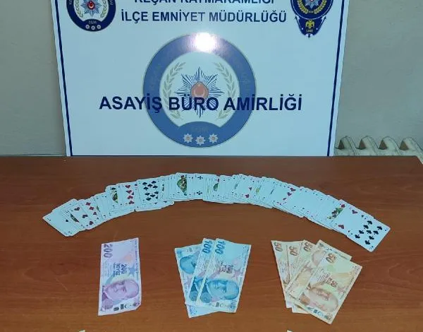 Ünsal YÜCEL/EDİRNE,(DHA)-EDİRNE’nin Keşan ilçesinde kumar oynarken suçüstü yakalanan 3 kişiye 6 bin 425 lira ceza kesildi.
