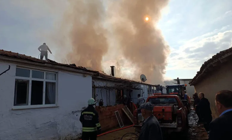 Yangın, Malkara’nın kırsal Ballıköy Mahallesi’nde Ramazan Dere’ye (76) ait tek katlı evde çıktı. Evde çıkan yangın evin bitişiğindeki saman deposuna da sıçradı.