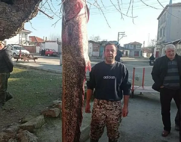 Meriç ilçesi Küplü beldesinde balıkçılık yapan Ali Ergi, nehirde tekneyle balık avına çıktı. Attığı ağa büyük balık takıldığını fark eden Ergi, uzun uğraşlarla 2 metre 30 santimetre boy ve 71 kilogram ağırlığındaki yayın balığını tekneye çıkardı. Dev yayın balığını, balıkçıların önündeki ağaca asan, uzun süredir bu büyüklükte balık yakalamadığını ve büyük sevinç duyduğunu anlatan Ergi, balığı görenlerin şaşkınlık yaşadığını da sözlerine ekledi. (DHA)