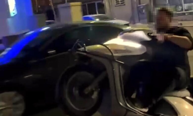 Motosiklet sürücüsünün tek teker üzerinde tehlikeli sürüşü kamerada