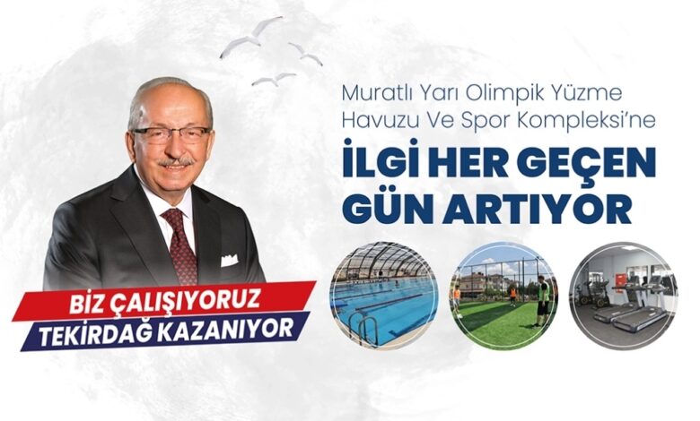 Hiç vakit kaybetmeden çalışmalarımıza başladık ve Muratlı ilçemize 2019 yılında bir Yarı Olimpik Yüzme Havuzu kazandırdık. Daha sonra aynı yerleşke içerisinde Muratlı Spor Kompleksimizi inşa ettik.  Şimdi tesisimizde yüzme yaz okulu ve futbol okulu olarak eğitim vermekteyiz. 3 dönem şeklinde yapılan kurslarımızın ilk dönemi 21 Haziran’da başladı. Birinci dönemde 118 çocuğumuz eğitim alıyor.  2. dönem için kayıtlarımızın sayısı da 200’e ulaştı. Futbol kurslarımızın 1. döneminde yaklaşık 100 çocuğumuz ve 30’ a yakın kız çoğumuz da futbol kursunda futbol eğitimi aldı. Yüzme derslerimiz sabah 10.00-14.00 saatleri arasında veriliyor. Havuzumuz 14.00-18.00 saatleri arasında da halka açık şekilde hizmet veriyor. Havuz ve halı sahamız dışında basketbol ve voleybol alanımız da vatandaşlarımızın hizmetine açık durumda. Yeni açılmasına rağmen fitness salonumuza da yoğun bir ilgi var. Şu an yaklaşık 60 üyemiz var ve her geçen gün bu sayı artıyor. Şimdi bu büyük ve modern tesiste her yaştan vatandaşlarımız spor yapıyor. Daha da önemlisi geleceğin yüzücüleri ve sporcuları burada yetişiyor. Ben tüm vatandaşlarımızı bu imkanlardan faydalanmaları için Spor Kompleksinde bulunan fitness salonu, halı saha, basketbol ve voleybol sahalarımızda spor yapmaya davet ediyorum.” dedi.