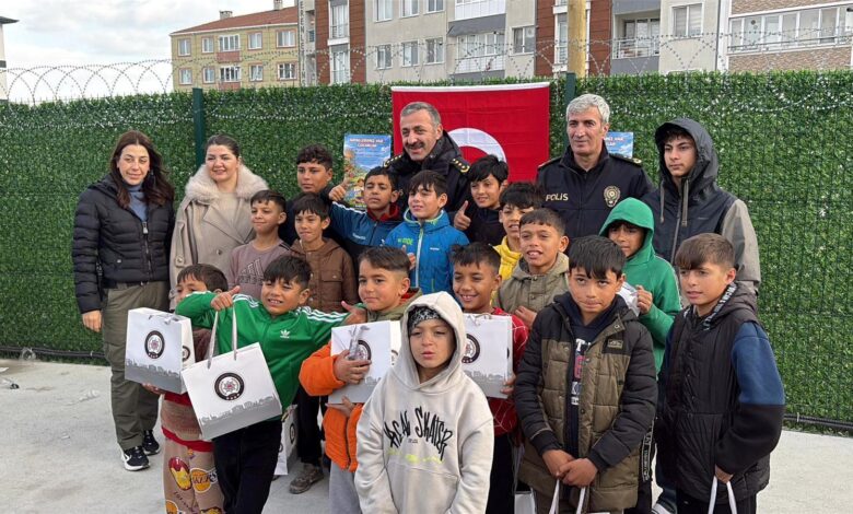– /ÇORLU (Tekirdağ), (Haber Merkezi)- TEKİRDAĞ’ın Çorlu ilçesinde adı asayiş ve narkotik olaylarıyla anılan dönüşümün başladığı ‘Kore Mahallesi’ olarak da bilinen Hıdırağa Mahallesi’nde kurulan geçici polis merkezinin konuğu çocuklar oldu. Ziyarette, çocukların polisi yakından tanıması ve güven duygusunun artması amacıyla oyun şemaları kuruldu, çeşitli hediyeler dağıtıldı.