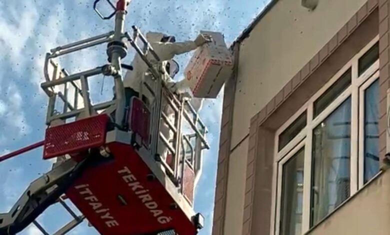 Murat YAYIN / MALKARA (Tekirdağ), (Haber Merkezi)- TEKİRDAĞ’ın Malkara ilçesinde, pazar yerindeki apartmanın dış cephesine oğul veren arılar, yaya ve araç trafiğinin durmasına neden oldu. Caddede paniğe neden olan arılar itfaiye ekipleri ile bir arıcı tarafından kutuya alınarak, bölgeden uzaklaştırıldı.