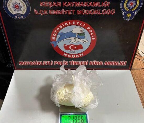Ünsal YÜCEL/ EDİRNE, (DHA)- EDİRNE’nin Keşan ilçesinde, polisin şüphe sonucu aradığı K.Ç.’nin (15) üzerinde 719,96 gram metamfetamin ele geçirildi. K.Ç.’nin, polisi görünce uyuşturucuyu yanında bulunan teyzesi B.K.’nın (40) kendisine verdiğini söylemesi üzerine kadın da gözaltına alındı.