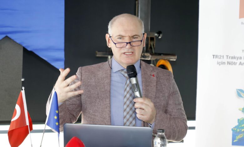 Trakya’daki iklim şartları hakkında bilgi veren Prof. Dr. Konukcu, “Daha önce yaptığımız çalışmalar yani 2000’li yılların başından bu yana 2020-2025 yılına geldiğimizde, 1970’li yıllara göre 0,9 santigrat derece bir sıcaklık artışı olacak dedik. Ama bugün Trakya’da 1,5 derece sıcaklık artışı meydana geldi. Bu her 5-6 yılda bir faz değiştiriyor. İklim değişikliği tahminleri yapılıyor, küresel olarak. Bu 5’inci fazla ilgiliydi. Şimdi 6’ncı faz başladı. Maalesef her bir faz değiştiğinde bir önceki iyimser senaryo, bir sonraki iyimser senaryonun yerini alıyor. Bu bizi ve dünyayı çok ciddi meşgul edecek bir problem olarak karşımıza çıkıyor. O bölgenin olduğu bir ortalama sıcaklık vardır. Oraya adapte olmuş, ona göre şekillenmiş bir biyoçeşitlilik vardır. Vücudumuzu düşünün 36,5 santigrat derece. 2 santigrat derece artsa ne olur? Yataklara düşeriz, komaya gireriz. Dünyada 5-6 derece sıcaklık artışından bahsediyoruz. Bu çok ciddi bir durum” ifadelerini kullandı.